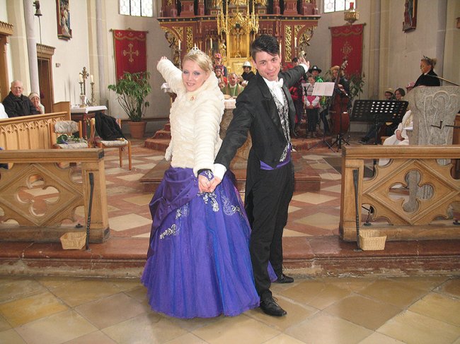 Zum Abschluss des feierlichen Gottesdienstes tanzten Prinzessin Christiane I. und Prinz Michael III. ihren Prinzenwalzer. Als Dank für die schöne Feier überreichte Prinzessin Christiane einen Orden an Pfarrer Dr. Waldemar Hadulla.